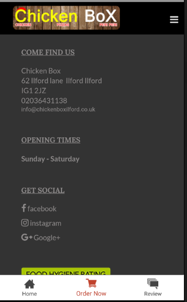 It’s so easy to use, fast and convenient. Try our new, online website which contains our entire takeaway menu. Chicken Box is at 62 ilford Lane, ilford, IG1 2JZ. You can now Order Online, all your favourite dishes. We offering you a delicious variety of Chicken Starters, Main Dishes, Side Dishes, Burger, Fries and have them delivered straight to your door in no time. Here at Chicken Box, ilford, we are constantly striving to improve our service and quality in online takeaway ordering to give our customers the very best experience. We hope you enjoy our online ordering website and our takeaway delicious food. Bon appetite!