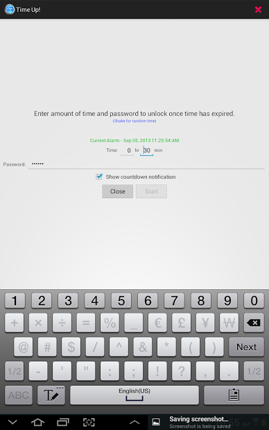 برای استفاده از: در برنامه بچه تلفن تایمر کلیک کنید، زمان را وارد کنید و یک رمز عبور را انتخاب نمایید. سپس بر روی دکمه شروع کلیک کنید. هنگامی که زمان به شما در تنظیم تمام شده است، از زمان! صفحه نمایش بالا میآید و رمز عبور باید دوباره وارد به روشن پیام.