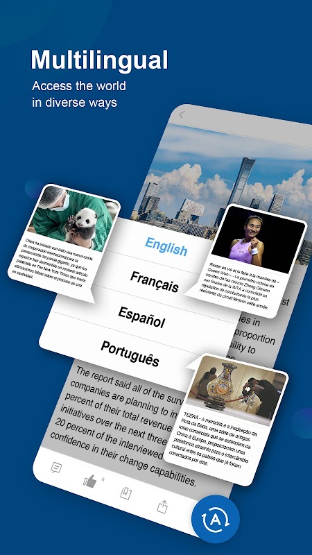 - اخبار را به زبان انگلیسی یا چینی در کانال دو زبانه بخوانید.