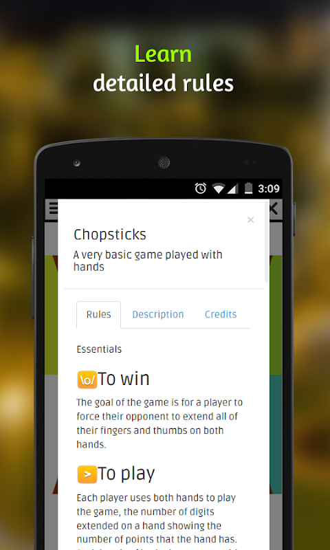 This application features 3 variants of Chopsticks: regular, leftover and exact.
