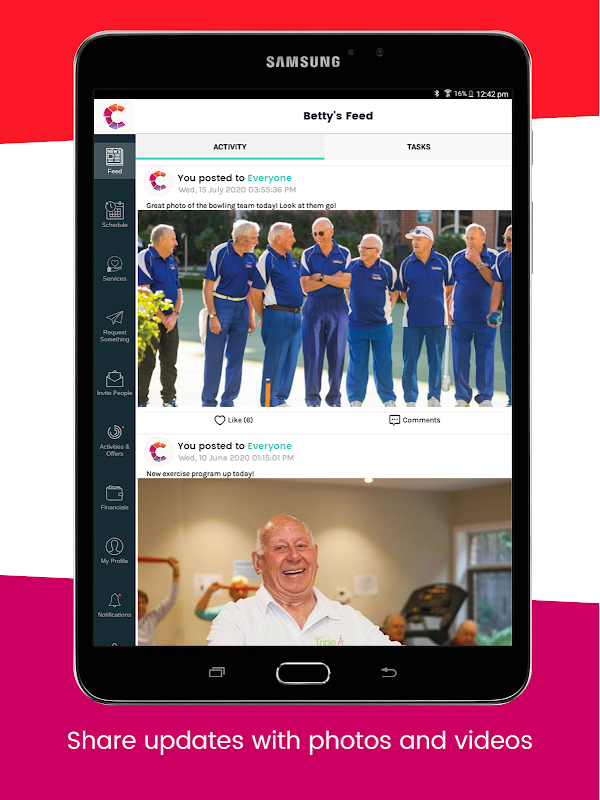 The Chorus app, powered by Hayylo allows existing customers of Chorus and their family to communicate and share information and updates with their loved ones and the team at Chorus.