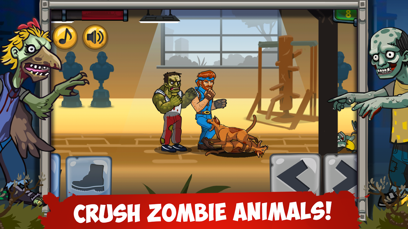 Chuck Norris meets Zombie Apocalypse in the 2D blood arcade game. Crush zombies!