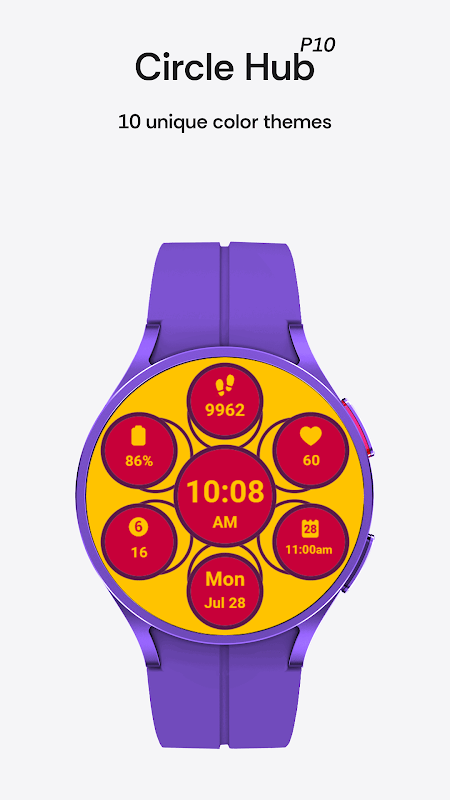 صفحه ساعت را با زمان، مراحل، تاریخ، 4 اسلات، 10 رنگ، Wear OS 4+ تمیز کنید.