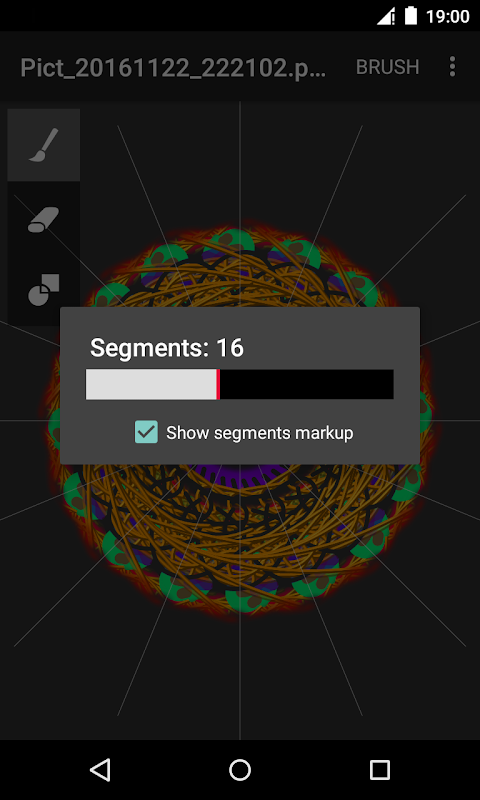 شما باید قلم مو را انتخاب کنید و تعداد بخش ها را برای تکرار تنظیم کنید. گزینه های موجود براش: رنگ، شفافیت، اندازه، برجسته و تاری. با استفاده از سه ابزار بکشید: قلم مو، پاک کن و قلم مو به حالت "رنگ روی همپوشانی در بالا". اگر ابزار را برای بار دوم انتخاب کنید، گفتگوی تنظیم پارامترهای قلم مو نمایش داده می شود.