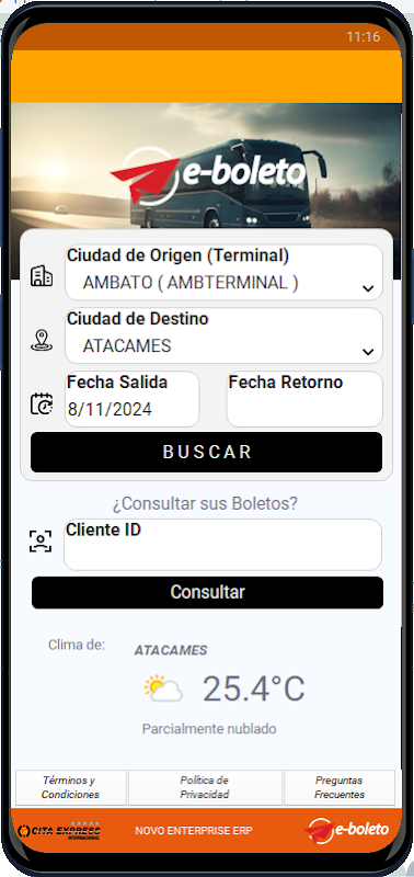 استفاده رسمی از اپراتور حمل و نقل CITA EXPRESS که در خاک اکوادور فعالیت می کند ، به شما امکان می دهد بلیط اتوبوس را از زیرساخت های خود بفروشید ، بدون اینکه به خدمات ارائه دهندگان شخص ثالث بستگی داشته باشد.