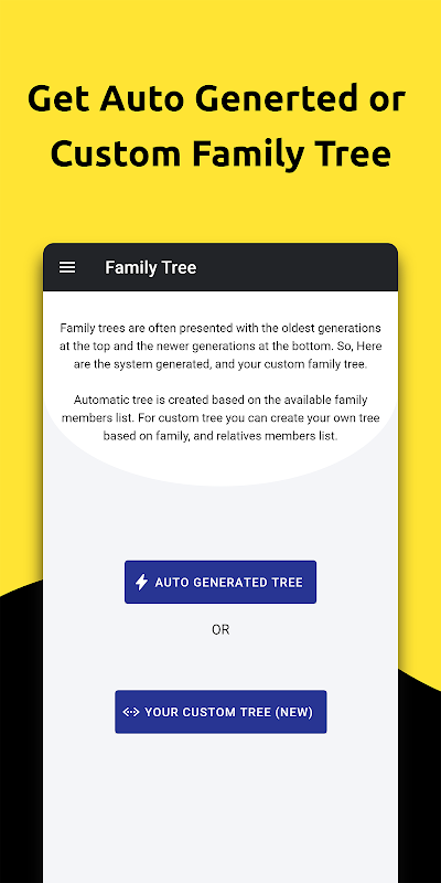 همچنین، سیستم ما یک شجره نامه بر اساس لیست اعضای خانواده ایجاد می کند. همچنین برخی از ویژگیهای اضافی مانند کتابخانه پیام داخلی برای ارسال تبریک و پیام به عزیزان، افزودن رویدادهای سفارشی، ایجاد درخت سفارشی (طرفدار)، سازنده درخت سلسله مراتب سازمان (pro)، با بهروزرسانیهای هیجانانگیزتر در افق دریافت خواهید کرد. اکنون بارگیری کن!