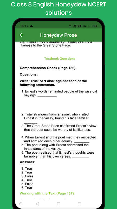 این برنامه شامل سوالات پاسخ به تمام فصل های موجود در CBSE Class 8 NCERT English Honeydew است.