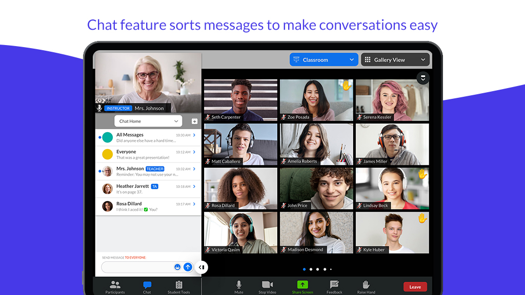 - Raising your hand, sharing feedback, and messaging your instructor or the whole class has never been easier.