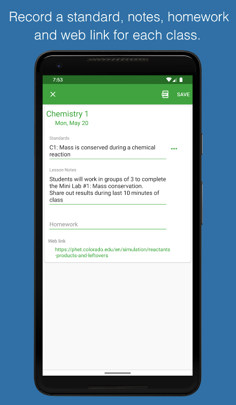 Class Planner به معلمان این امکان را می دهد که به راحتی برنامه های درسی خود را در دستگاه تلفن همراه یا Chromebook نگه دارند.