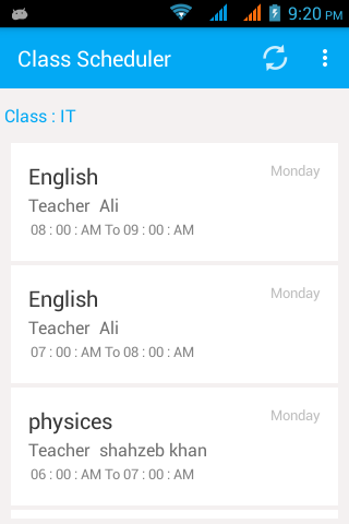(مزایای اصلی این است مدیر (موسسه) تغییر جدول زمانی خود را فقط ورود و تغییر، و جزئیات فعلی موسسه مربوطه و کلاس (جدول زمانی) در تمام کاربران آندروید به روز رسانی به صورت خودکار)