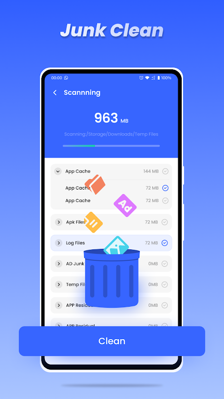 - یک ضربه برای پاک کردن فایل های ناخواسته و آزاد کردن حافظه.