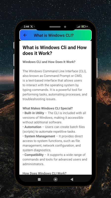 این برنامه برای مدیران سیستم، توسعه دهندگان و هر کسی که به دنبال بهبود مهارت های خط فرمان خود در ویندوز است، عالی است. چه در حال عیب یابی، خودکارسازی وظایف یا به سادگی یادگیری باشید، برنامه ما همه ابزارهایی را که برای موفقیت نیاز دارید را ارائه می دهد.