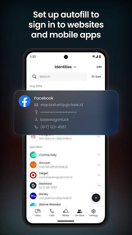 • ایجاد نامحدود ایمیل و نام مستعار تلفن: Cloaked شماره تلفن های فعال، آدرس های ایمیل، رمز عبور و به زودی کارت های اعتباری مجازی تولید می کند - بنابراین می توانید هویت واقعی خود را هنگام ثبت نام یا خرید آنلاین پنهان کنید. استفاده از نام های مستعار برای ثبت نام و جایگزینی اعتبارنامه های قدیمی تر، اسپم و قرار گرفتن در معرض را به شدت کاهش می دهد.