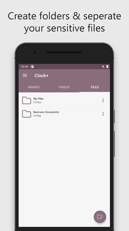 - Clock Vault، محافظت از فایل های خصوصی شما را آسان می کند و از ایمن بودن فایل شما حتی در صورت گم شدن یا آسیب دیدن گوشی شما اطمینان حاصل می کند.