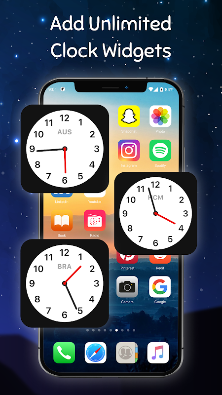 Clock Widget iOS 15 provides you with the ability to display time in the all country outside the home screen with the best image quality, extremely battery saving.