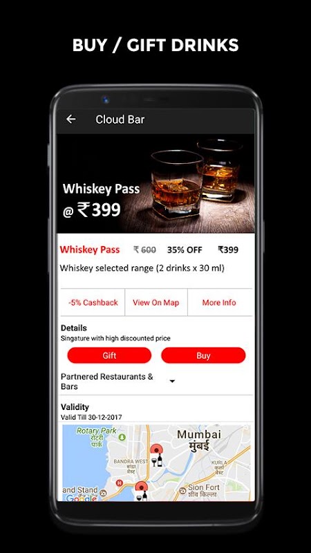 Cloud Bar gets you the convenience and savings of your own reserved bar which you can redeem across all our partner restaurants & bars in Mumbai, Delhi, Gurgaon, Noida.