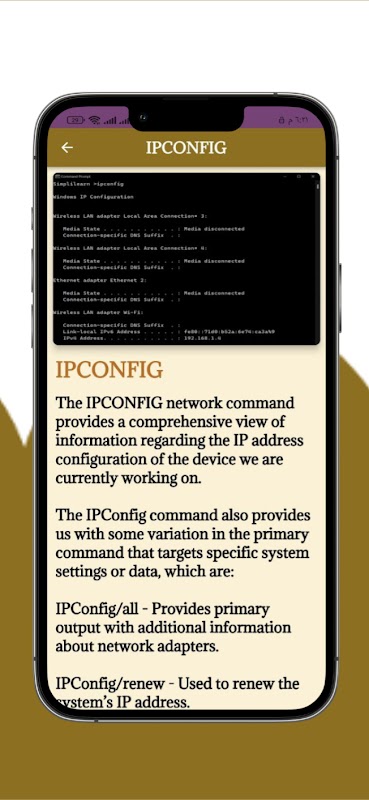 مفاهیم و دستورات ضروری شبکه را پوشش می دهد و به کاربران امکان می دهد مشکلات اتصال به شبکه را تشخیص دهند، اطلاعات مربوط به دستگاه های شبکه را جمع آوری کنند، تنظیمات شبکه را پیکربندی کنند و کارهای مختلف مرتبط با شبکه را انجام دهند.