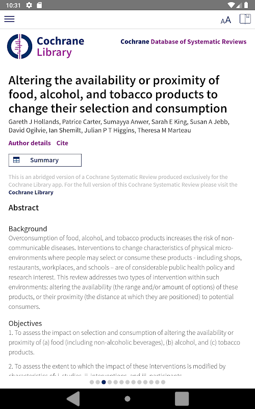 • Downloadable Cochrane Review content for reading offline.