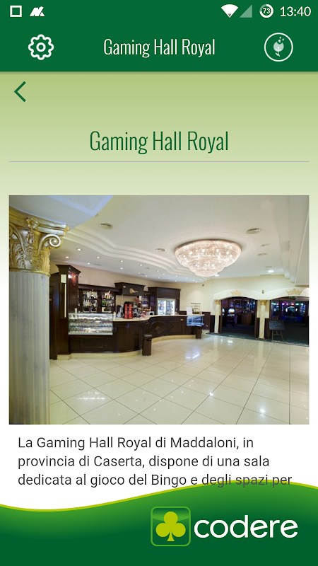 La nuovissima App CODERE, disponibile gratuitamente, ti darà accesso all’elenco delle vincite più importanti, al piano convenzioni con esercenti, alle news dei singoli eventi, alle informazioni per partecipare ai concorsi e a una ricca photogallery. E per essere sempre aggiornati su una o più sale di interesse e non perdere nessuno appuntamento, sono disponibili notifiche push.