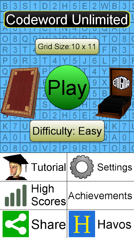 3) سطح دشواری را می توان توسط کاربر مشخص کرد، که مجموعه کلماتی را که مولد استفاده خواهد کرد تعیین می کند. هر چه استخر بزرگتر باشد، سختی آن بیشتر است. حتی یک حالت یادگیری زودهنگام با تعداد محدودی از کلمات وجود دارد که هدف آن زبان آموزان انگلیسی است. تعداد حروف شروع را نیز می توان مشخص کرد. نمرات بالاتر را می توان با کلمات رمز دشوارتر به دست آورد