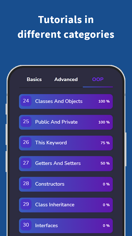این برنامه همچنین دسترسی آفلاین به آموزش های برنامه نویسی خود را فراهم می کند. شما می توانید برنامه نویسی را از هر جایی از طریق گوشی هوشمند یا تبلت خود یاد بگیرید.