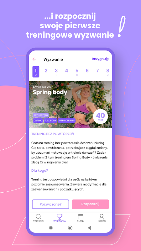 - اپلیکیشن Everyday Fit توسط Marta Kruk ایجاد شده است - یک مربی تناسب اندام که صدها هزار نفر با او آموزش دیده اند. مارتا، مربی با تجربه، ورزشکار سابق و فارغ التحصیل آکادمی تربیت بدنی، معتقد است که بدون استرس می توان به یک سبک زندگی سالم دست یافت. و من خوشحال خواهم شد که آن را به شما نشان دهم!