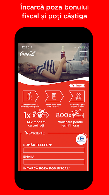 لایک را هرگز از قبل باز نکنید - COCA-COLA EXPERIENCES تابستان 2020! خرید بین 16 ژوئیه - 7 اکتبر 2020 بسته به فروشگاه شرکت کننده ، هر 2 محصول شرکت کننده ، از طیف وسیعی از محصولات شرکت کننده! با پر کردن فرم ثبت نام ، عکس مربوط به دریافت مالی را در cokescan.ro یا در برنامه Coke Scan ثبت کنید و می توانید با ترسیم قرعه کشی جوایز کمپین را بدست آورید.