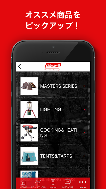 Colemanのキャンプ用品やアウトドアの総合カタログアプリが誕生しました。