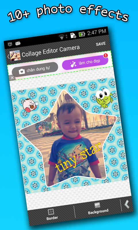 "Collage Editor Camera" is an app with a preset of 50 collage templates, that lets you design your most lovely photos. The templates are fully customizable, so you can use your creativity to modify the collage template and put your beautiful photos to it to create your favorite photos. This app can be used with the photo from other camera app like Camera 360, Line Camera.