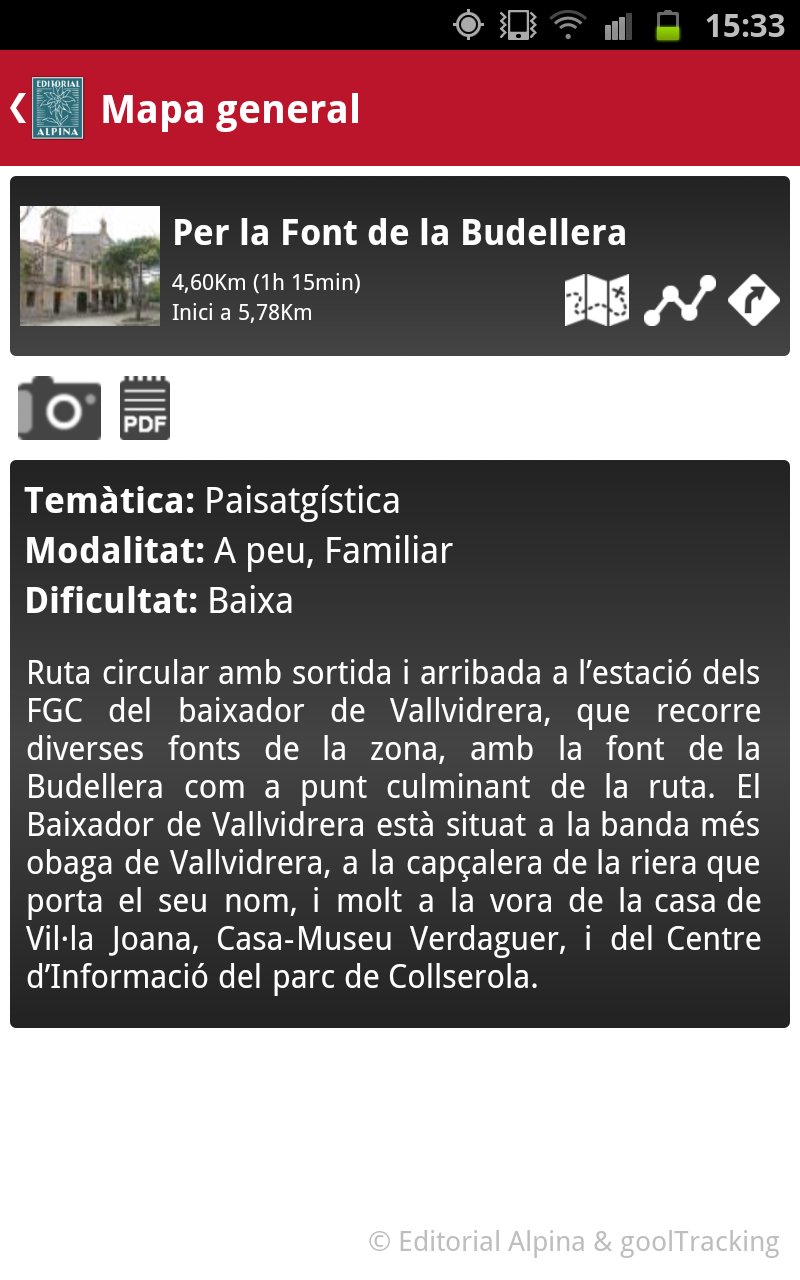 La APP de la "Guia Alpina - Collserola" es un projecte conjunt d'Editorial Alpina i el portal outdoor goolNatura que incorpora i combina tota la informació de la guia i el mapa existent en format paper però amb l’avantatge de poder-se consultar mitjançant dispositius mòbils smartphone. A més, s'hi sumen tots els descomptes i promocions associades a goolNatura.