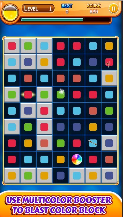 Engage yourself in puzzle and educative game. Identif `y different colors and path to blast same blocks.