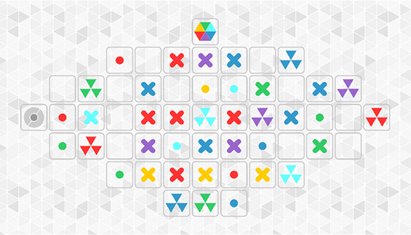 Obstacles are represented as colored crosses, which can be removed from the board the same color as the obstacle.