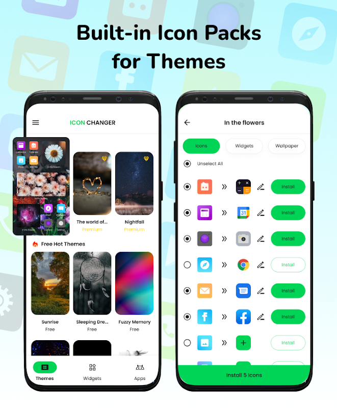 🚀 صرفه جویی در وقت و انرژی با یک کلیک نصب کننده تم ویژه برای سفارشی کردن تغییر آیکون برنامه.
