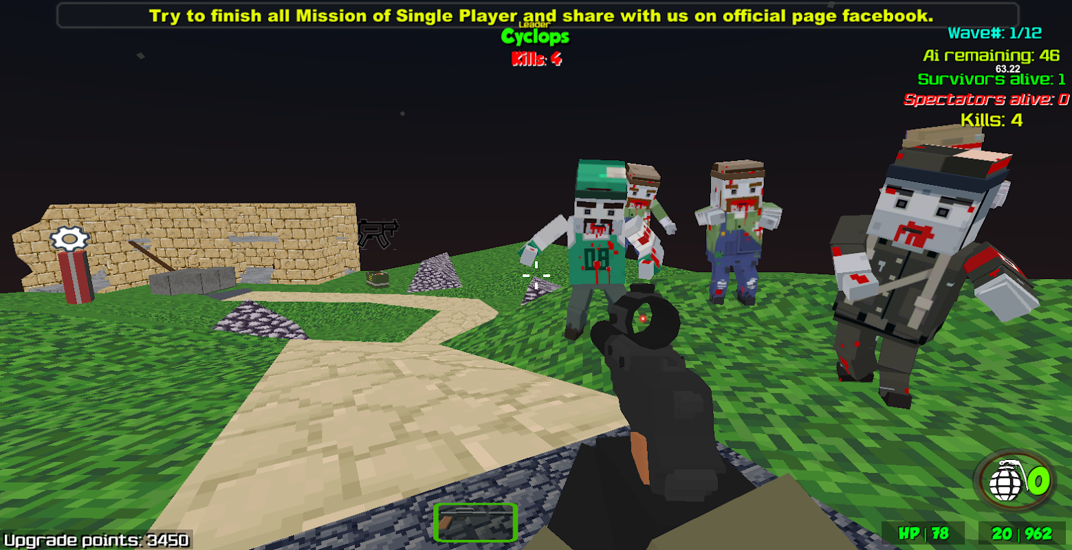 Action multiplayer Fps and enemy zombies Pixel quality style , You can fight with friends on vehicle or other peoples and also play as a team and win all wave zombies.