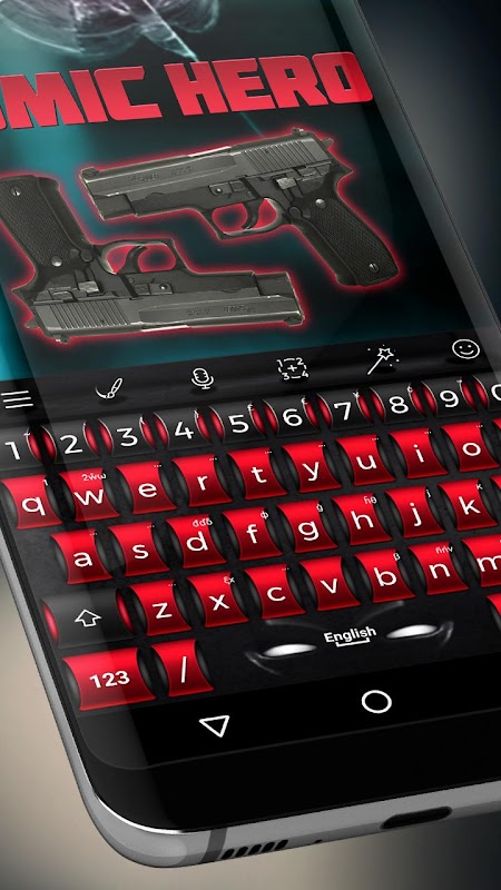This red hero theme is just what you need: power, accuracy, feeling. Also your android keyboard will love this red hero theme outfit and your favorite gadget will look astonishing!