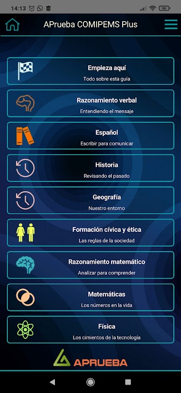 راهنمای مطالعه APtest COMIPEMS شامل هزاران سوال مشابه آزمون واقعی است. شامل تئوری در مورد همه مباحث کنکور دبیرستان ، به علاوه تمرین و میان دوره ها است. هر س includesال شامل پاسخ صحیح آن ، روش حل ، راهکارها و ترفندهایی برای پاسخگویی آسان تر به آزمون است.