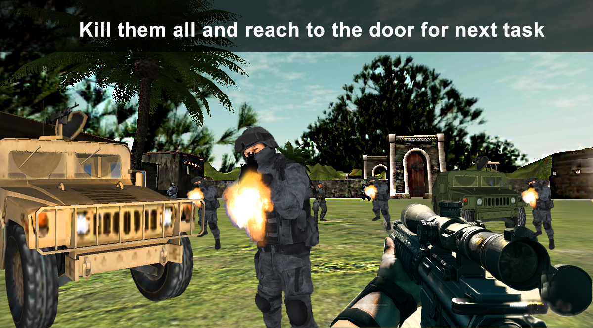 You are special trained and can work as One Man Army. Enemies with different weapons like mp5, AK-47, SLG etc. are surrounded around you. They are inside the forts. Clear the fort from enemies and reach to the next door of fort to get a new task. This simulator has great enjoyment time with Lots of astounding and action levels.
