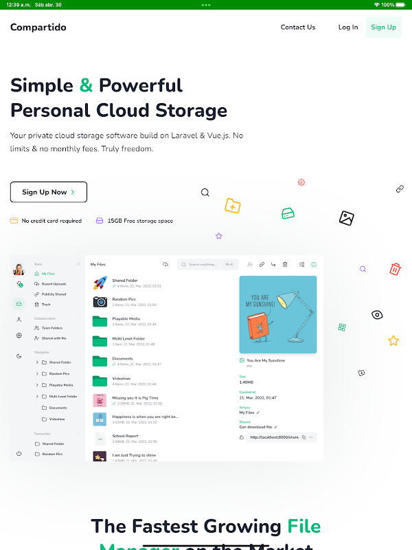 Compartido این امکان را برای همه فراهم می کند که بتوانند فایل ها را به فضای ابری آپلود و انتقال دهند و با هر کسی که می خواهند به اشتراک بگذارند. از هر دستگاهی به فایل های خود دسترسی داشته باشید. Compartido به شما امکان می دهد اسناد، فایل ها، عکس ها، فیلم ها و غیره را با هرکسی که می خواهید به اشتراک بگذارید.