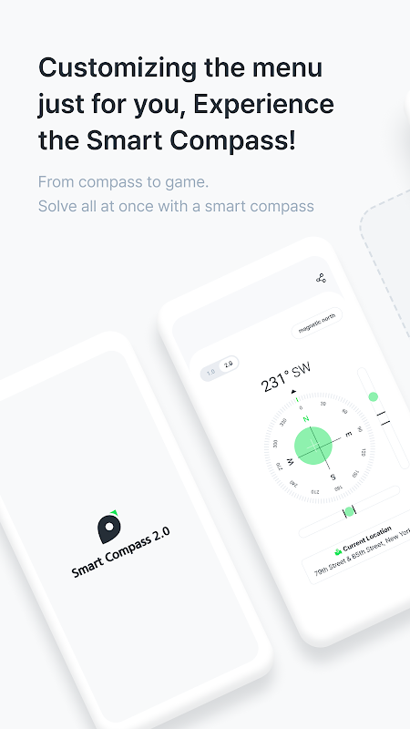 From checking the correct direction to playing games,Join the Smart Compass anytime, anywhere!Further from the compass, harmful electromagnetic field measurements and game functions are added.The design and functions have been reorganized so that they can be used in various ways.Now feel the convenience of everyday life with a smart compass.Personalization MenuCounts the number of uses per user's menu and rearranges them in the order of most frequently used menus.Smart CompassUse the compass combined with the horizontal scale and weather information for travel, camping, mountain climbing, and furniture installation.Additionally, you can see where you are and see the direction in real time without searching.Smart Compass Electromagnetic Field MeasurementsTake care of your health by measuring and recording heart rate changes caused by harmful electromagnetic fields in your daily life.Smart Compass Game ZoneEnjoy a variety of hyper-casual games on the Smart Compass, including fun and rewards at once.