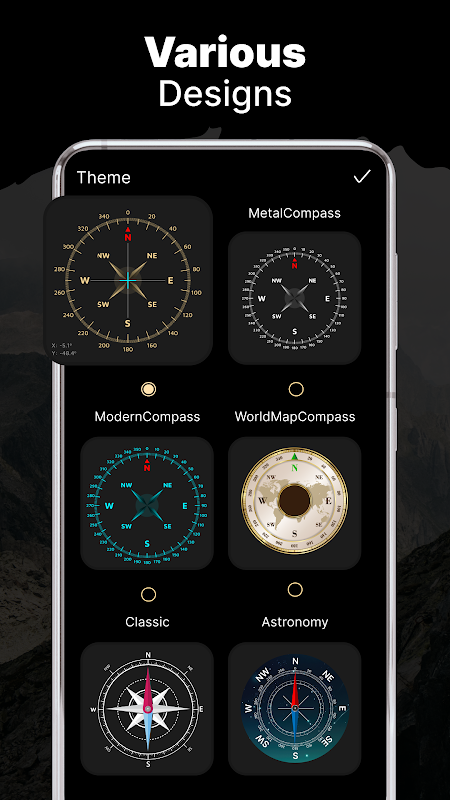 - تجربه شخصی: قطب نما خود را با تم های مختلف و گزینه های نمایش سفارشی کنید.