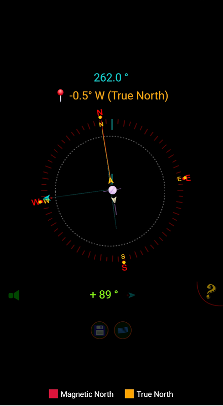 قابلیت سوئیچینگ شمال/مغناطیسی واقعی این برنامه دارای یک صفحه قطب نما 360 درجه تعاملی با خوانش درجه در زمان واقعی است.