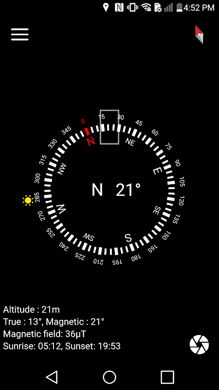 Compass app is smart and professional free compass indicating various accurate information. Also, compass app shows the position of the sun.
