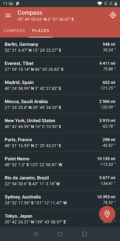 این برنامه به منظور محاسبه موقعیت مکانی شما و هدر رفتن مغناطیسی برای صحت بهتر این قطب نما نیاز به مجوز دارد و اطلاعات بیشتری همچون شمال واقعی ، ارتفاع واقعی از سطح دریا ، جهت و مسافت از هر مکان را در اختیار شما قرار می دهد. جهان