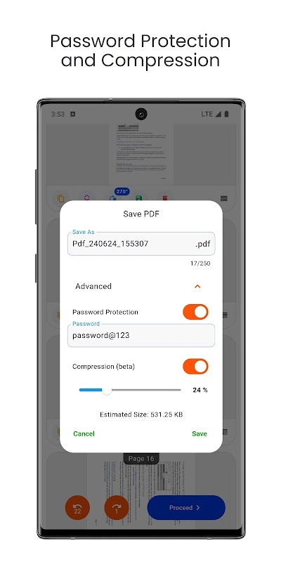 فشرده سازی PDF (بتا): با بهینه سازی تصاویر، اندازه فایل PDF را کاهش دهید (در حال حاضر از تصاویر JPEG در PDF پشتیبانی می کند). ایده آل برای اشتراک گذاری و صرفه جویی در فضا.