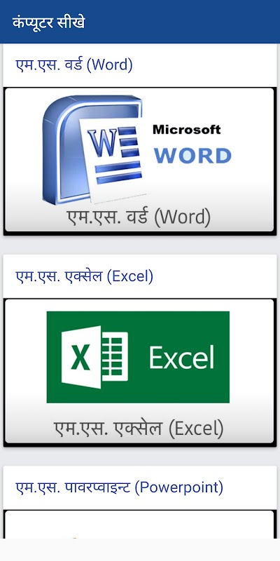 This Computer Course in Hindi (Learn Computer in Hindi) application is specially designed for the people who want to learn the basics of the computer operations. You can learn operating a computer in just 15 days by using Computer course in hindi app . This application is in HINDI and explain all the things very clearly with images and simple text, so that anyone can understand and learn computer course in hindi. It does not require you to be an expert in computer programming or english to learn computer basics.