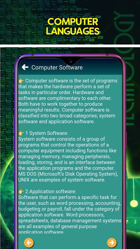 برنامه آموزش کامپیوتر به شما کمک می کند دانش کامپیوتر خود را افزایش دهید. با استفاده از این برنامه می توانید نحوه استفاده از رایانه را یاد بگیرید. این برنامه شامل اطلاعات اولیه در مورد عملیات کامپیوتر است. همچنین در این برنامه اطلاعات مربوط به قطعات مختلف کامپیوتر گنجانده شده است.