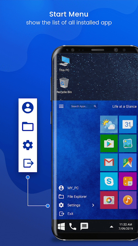You can quickly toggle the basic settings such as: wifi, airplane mode, screen brightness, turn on the flash, Auto rotate, kill task to increase the speed of the phone If you really thought that Windows 10 can fit in the 9mo of the application.... That surely this application is not made for you. Make your Android phone home screen looks like a Desktop launcher style windows, 10 Custom Desktop Computer Design Customize your phone with a unique look and feel of the fastest launcher win 10 Just surprise your friend with the new win launcher on your Android phone