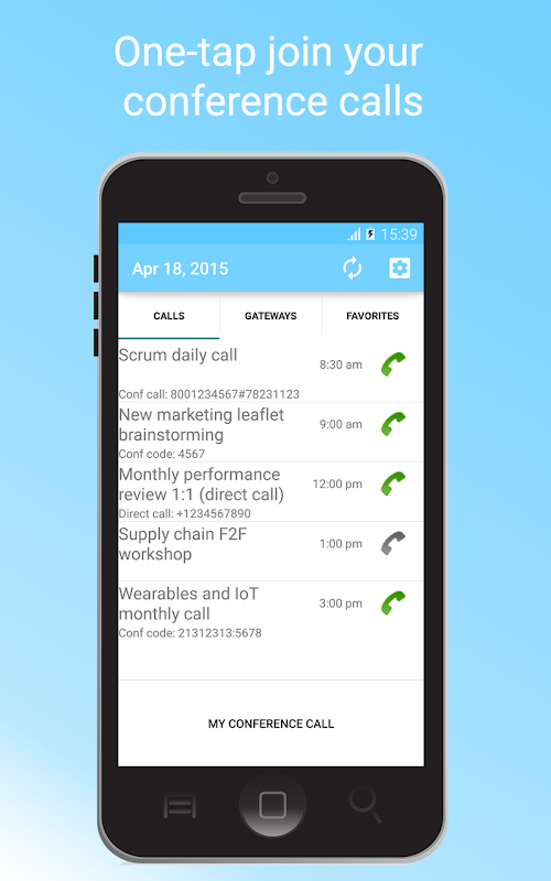 با تشکر از کنفرانس تماس تلفنی ، دیگر نیازی به نوشتن کد شرکت کننده یا جستجوی دعوت نامه در نامه خود نخواهید بود. همه چیز درست در نوک انگشتان شما موجود است. بدون نیاز به ایجاد یک حساب خارجی (مانند برخی از برنامه های دیگر) یا همگام سازی تقویم خود را در فروشگاه داده های خارجی ، کنفرانس تماس با شماره گیر به سادگی لحظه ای که آن را در دستگاه خود بارگیری می کنید کار می کند!