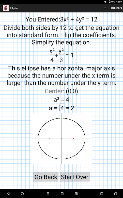 Input a conic equation and get info about vertices, foci, asymptotes, and more.