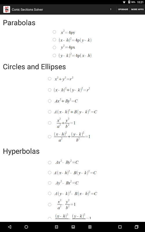 APKPure از تأیید امضای نرمافزار برای اطمینان از دانلودهای بدون ویروس APK Conic Sections Solver استفاده میکند.